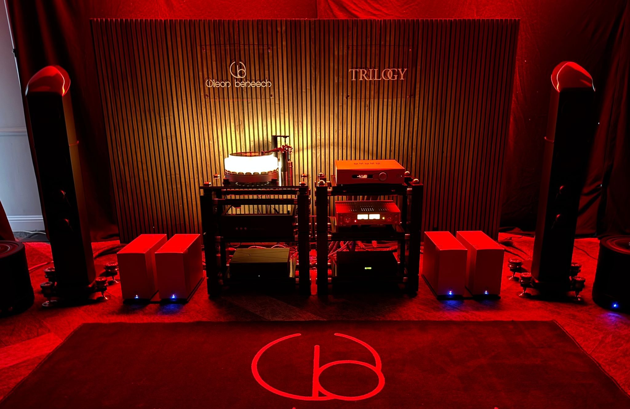 Like their Bristol setup, Wilson Benesch paired with Trilogy for this room, and had their brand-new Greenwich turntable on demo – this was its debut at the show. They were using their Resolution 3Zero speakers with a pair of IGx Infrasonic generators, Trilogy 995R mono amps, 915R pre-amp, HSE Audio Masterline 7 phono stage, CAD 1543 MKIII DAC, and Innuos ZEN next-gen server. The new Greenwich turntable was kitted out with their GRAVITON Ti armwand, and TESSELLATE Ti-S Sapphire cartridge.